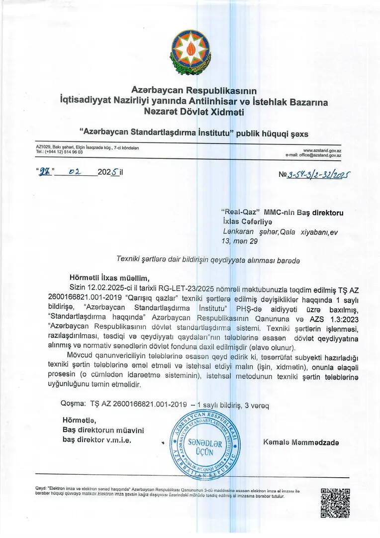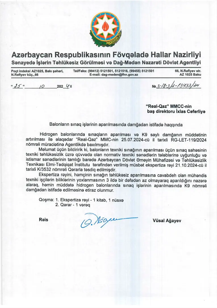 RealGaz, Azerbaycan Fövqəladə Hallar Nazirliyi tarafından tüm silindir tiplerinin hidrostatik testlərini gerçekleştirme konusunda resmi yetki sahibidir. Bu yetki, ekipman güvenliğini belgelendirme və rəsmi sənədlərlə təmin etmə imkanı verərək bizi bölgə bazarında fərqləndirən əsas üstünlüklərdən biridir.