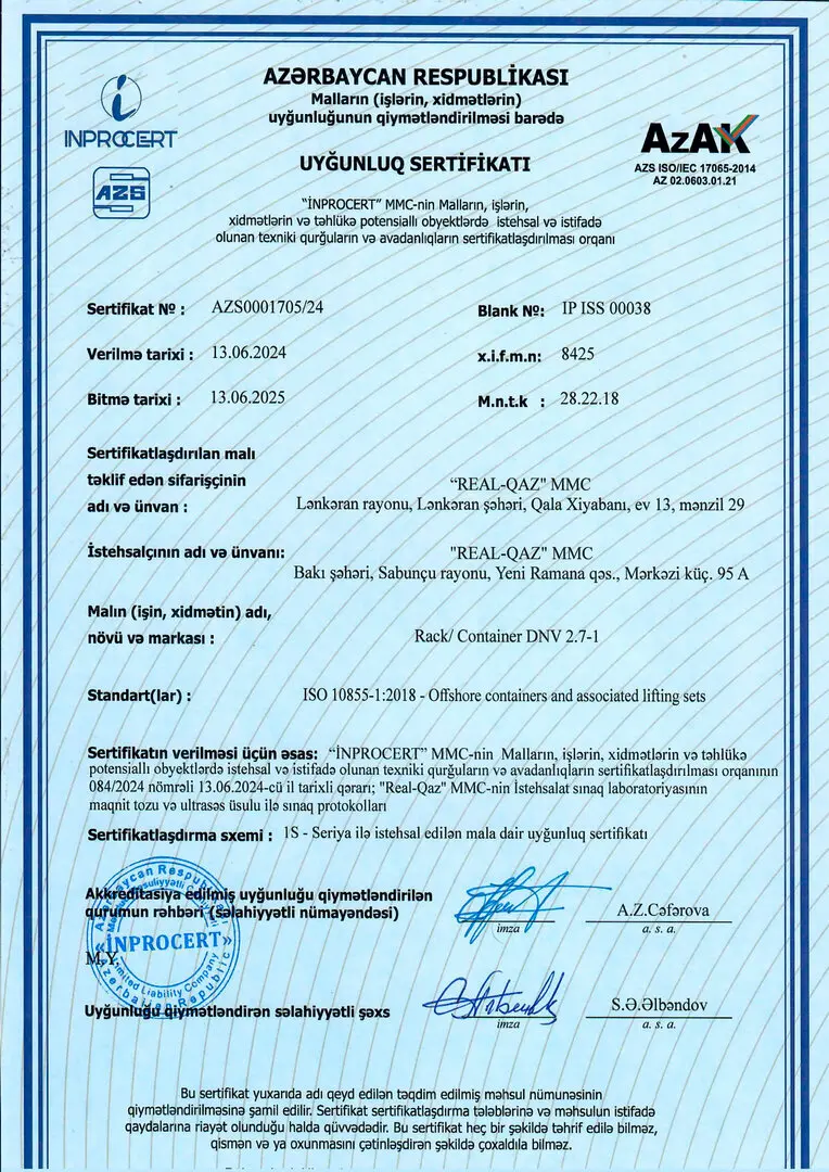 Şirketimiz aşağıdaki entegre yönetim sistemi standartları çərçivəsində fəaliyyət göstərir: